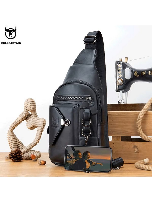 Morral de Cuero Genuino, Marca Bull Captain Modelo XB-019-BK...