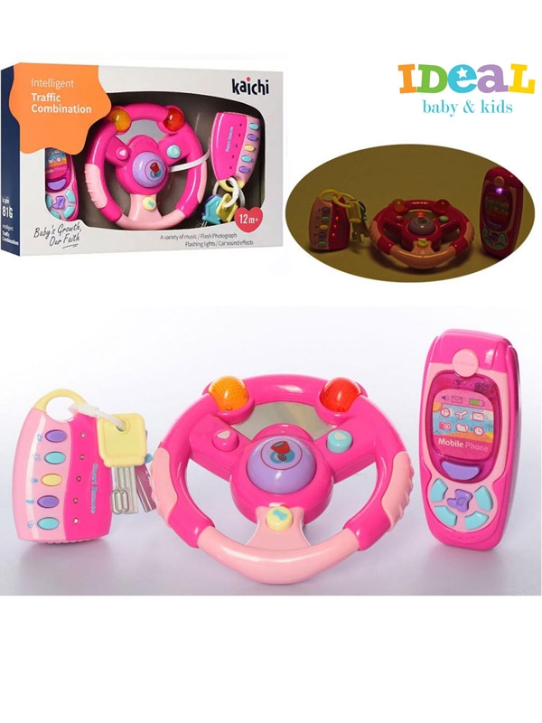 Set Timón Con LLave y Telefono Musical Con Luces Rosado