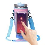 Bolso ,para botella, de lienzo impermeable , ideal para hacer deporte, con bolsillo , para celular, con medidas