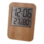 Reloj digital con cubierta de bambú natural, ideal para mesa de noche, oficina y otros, con medidor de temperatura y húmedad, modelo elegante y estético, 12 cm de alto y 8 cm de ancho. (funciona con 02 pilas).