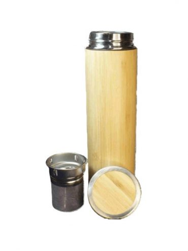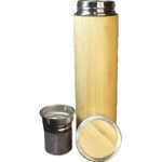 Termo de bambú con acero interior 304, modelo moderno y ecológico, con filtro para las infusiones, 24.5 cm altura y 7 cm diámetro.