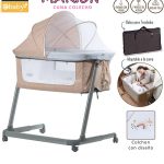 La cuna colecho ha sido diseñada pensando en la comodidad, seguridad y practicidad tanto para los padres como para el bebé. Con su altura ajustable en 7 posiciones, permite adaptar la cuna a la altura de cualquier cama, facilitando el colecho de manera segura. Además, su capacidad de inclinación de hasta 45º ayuda a mejorar la respiración del bebé y reduce el riesgo de reflujo.